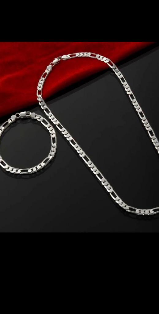 Charms 4MM Classic Geometry Chain 925 Stamped Silver Bracelet Necklace for Men Women Jewelry Set Fashion Party Christma Gifts — buy online with free worldwide shipping!