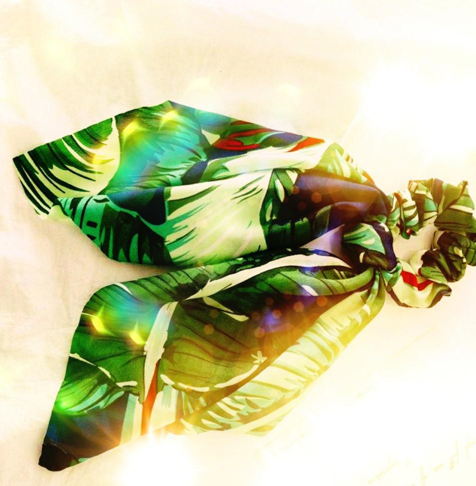 New Fashion Print Leaf Long Scarf Hair Band For Women Scrunchie Elastic Ribbon Bow Tie Ponytail Holder Hair Accessories Headwear — buy online with free worldwide shipping!