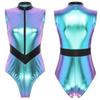 Women Halloween Astronaut Cosplay Costumes Shiny Metallic Zipper Sleeveless Bodysuit Catsuits