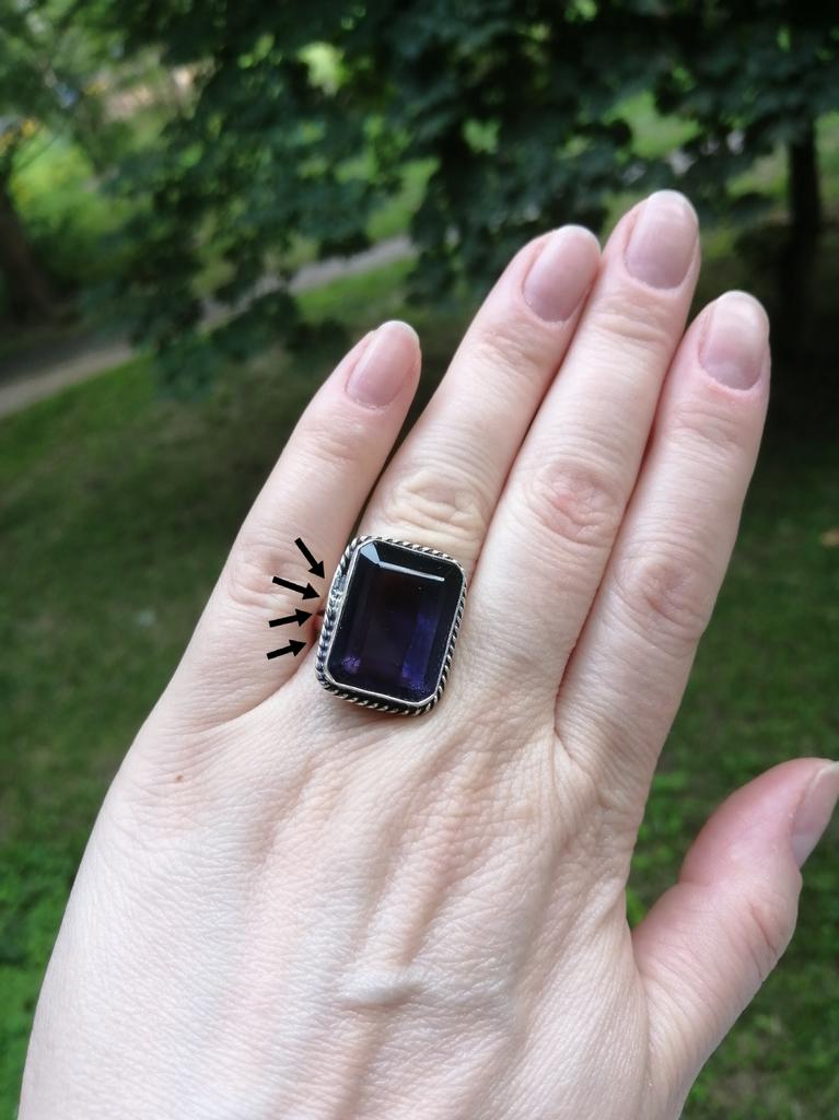 Very beautiful silver ring with amethyst. The sample is marked. The size corresponds to the ordered one. It looks even more beautiful than in the photo.