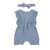Summer Baby Girl Rompers Baby Solid Lace Design Clothes Linen Ruffles Toddler Flare Sleeve Jumpsuit Headband One-Pieces