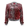 Women Jacket Shiny Sequin Long Sleeve Stand Collar Striped Loose Zipper Closure Elastic Cuff Stage Performance Emcee Coat — buy online with free worldwide shipping!