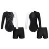 Girls Long Sleeve Gymnastics Leotard Unitard with Shorts 2 Piece Outfits Ballet Dance Bodysuit Biketard Dancewear