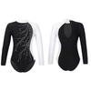 Girls Kids Sparkly Rhinestones Gymnastic Leotard Long Sleeve Ballet Dance Athletic Workout Bodysuit Unitard