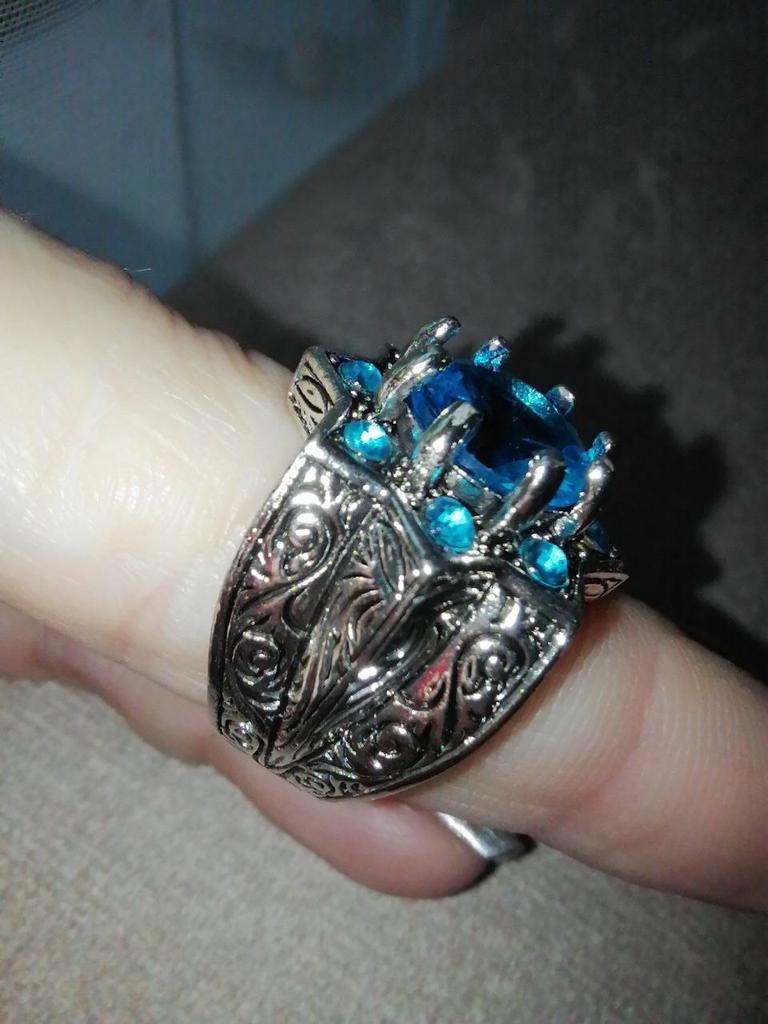 Vintage Round Inlaid with Sea Blue Zircon Men's Ring Silver Color Metal Carving Pattern Ottoman Rings Jewelry — buy online with free worldwide shipping!