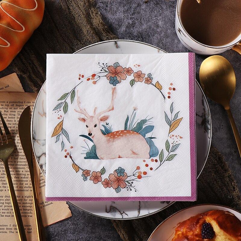 Disposable Party Napkin Double Layer 20 Pieces/Pack Deer Motif