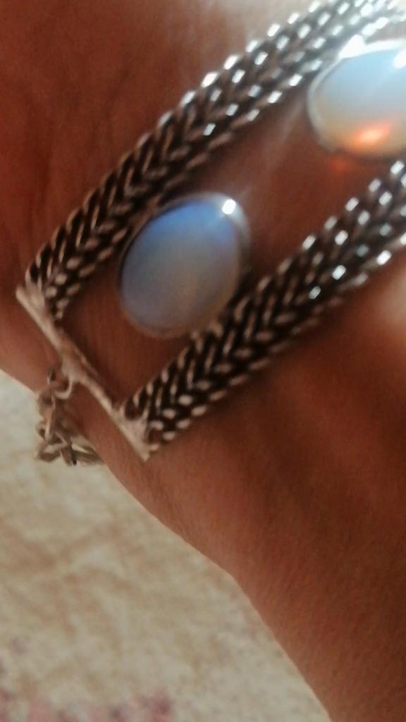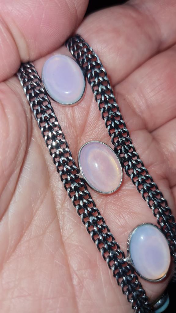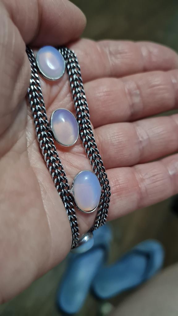 The description states that the opal is natural! There is no flicker or opalescence at all! One insert (I can’t call it a stone) is completely different from all the others. Rough carabiner clasp! Summary --- third-rate product!