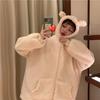 Harajuku Kawaii Zipper Hoodie Women Sweatshirt Japanese Frog Thick Oversized Lambs Wool Coats Trend Warm Winter Clothes