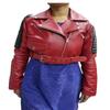 Noora Women's Red & Black Cropped Slim Fit Beautiful Look Biker Leather Jacket | Clubbing & Party Wear Jacket — buy online with free worldwide shipping!