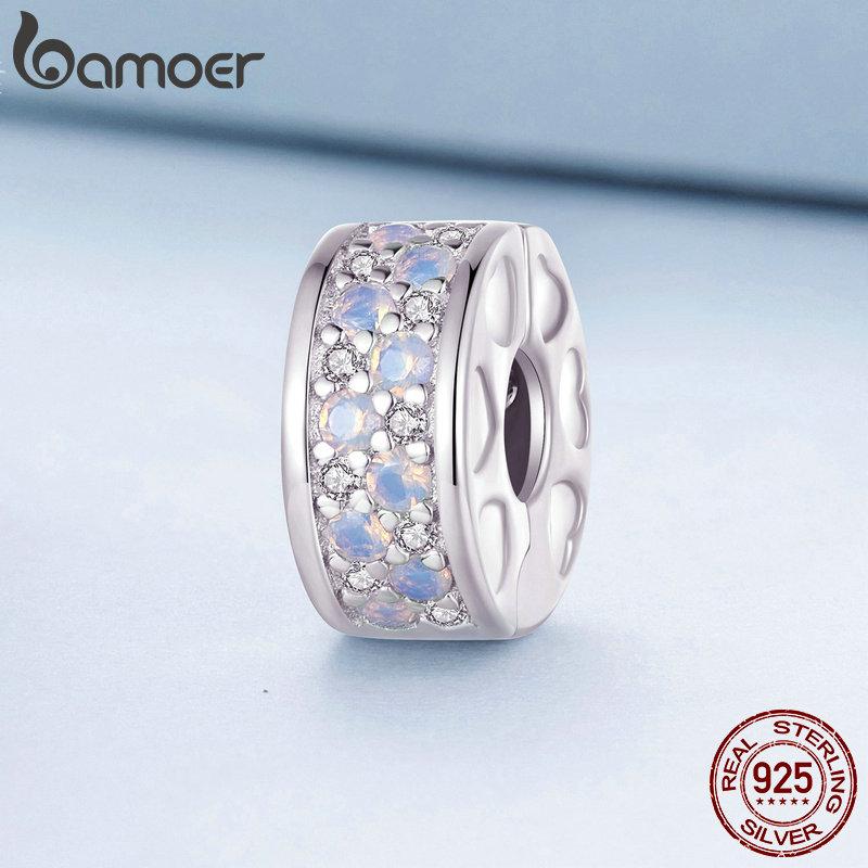 BAMOER 925 Sterling Silver Pink Zircons Symphony Buckle Charms Pendant for Women Bracelet Bangle DIY Jewelry — buy online with free worldwide shipping!