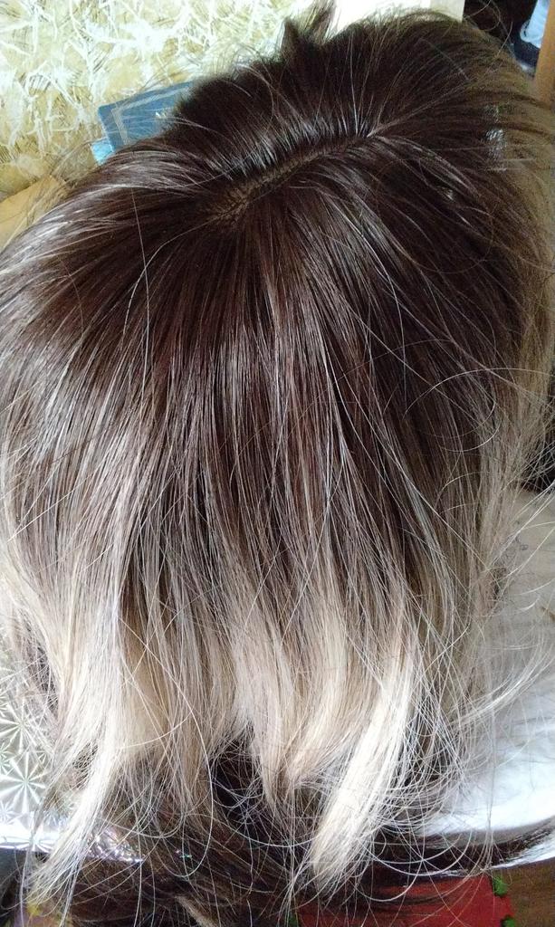 ALAN EATON Short Ombre White Brown Straight Wig Synthetic Bob Wigs with Bangs Heat Resistant Fiber Wigs Hair — buy online with free worldwide shipping!