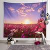 Sunset Flower Field View Tapestry Lotus Lavender Rose Flower Wall Art Tapestry Bedroom Dorm Room Aesthetics Home Decor