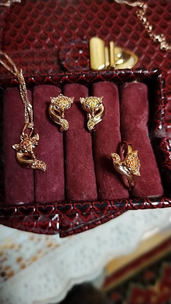 Kinel Red Natural Zircon Fox Jewelry Set Vintage Rose Gold Color Animal Necklace Earrings And Ring Sets — buy online with free worldwide shipping!