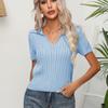 GMXIA Women's Fashion Casual Solid Color Print Summer Spring Short Sleeve V-Neck Knitted short sleeves — buy online with free worldwide shipping!