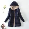 Women Mid-length Hooded Fleece Jacket Autumn Winter Lightweight Plush Lining Solid Ladies Parka Loose Female Zipper Outwear