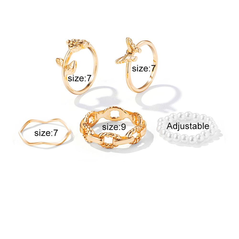 Bohemian Rings Butterfly Rose Flower Geometry Chain Gold Color Metal Ring Set Personality Lady Wedding Jewelry — buy online with free worldwide shipping!