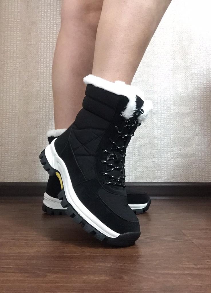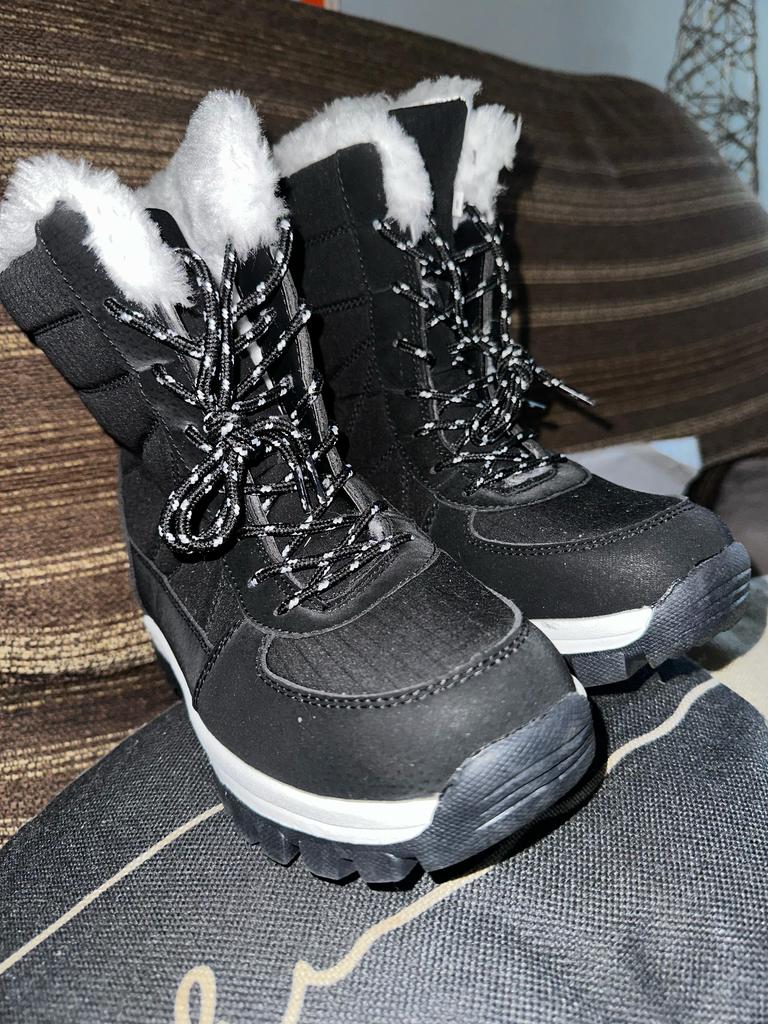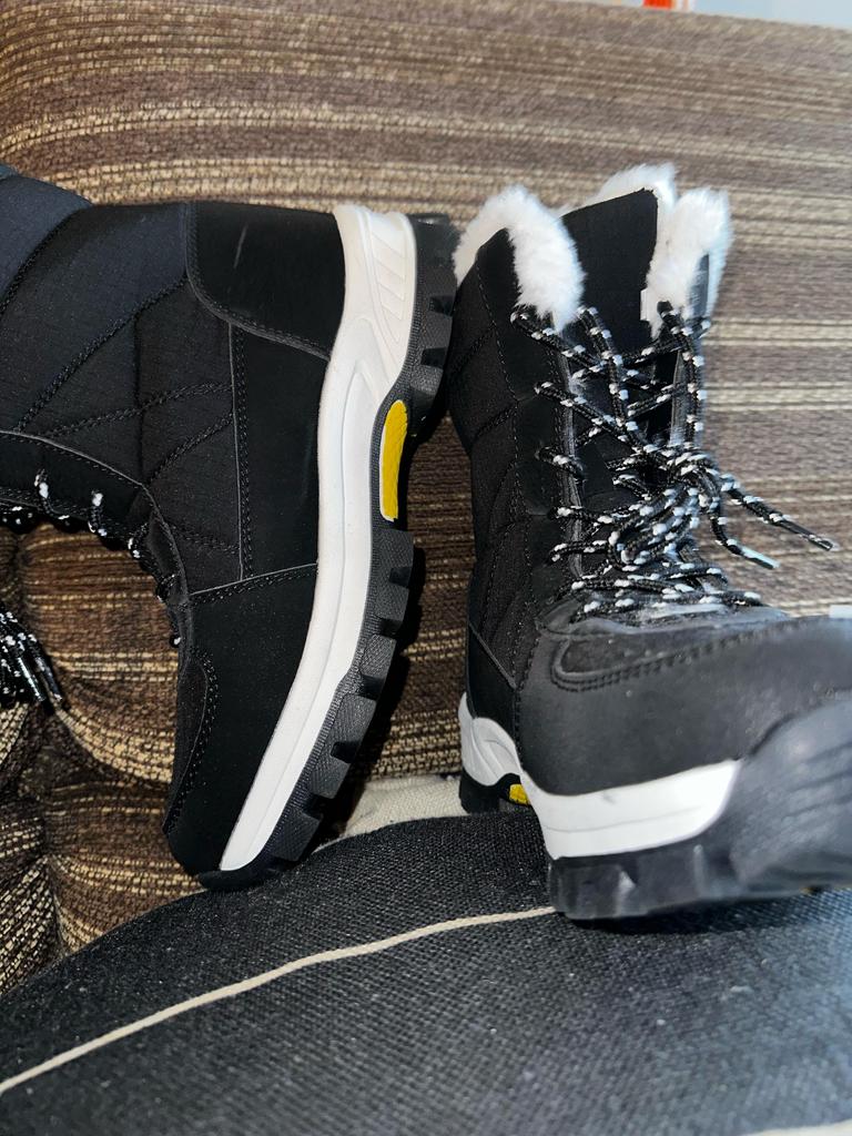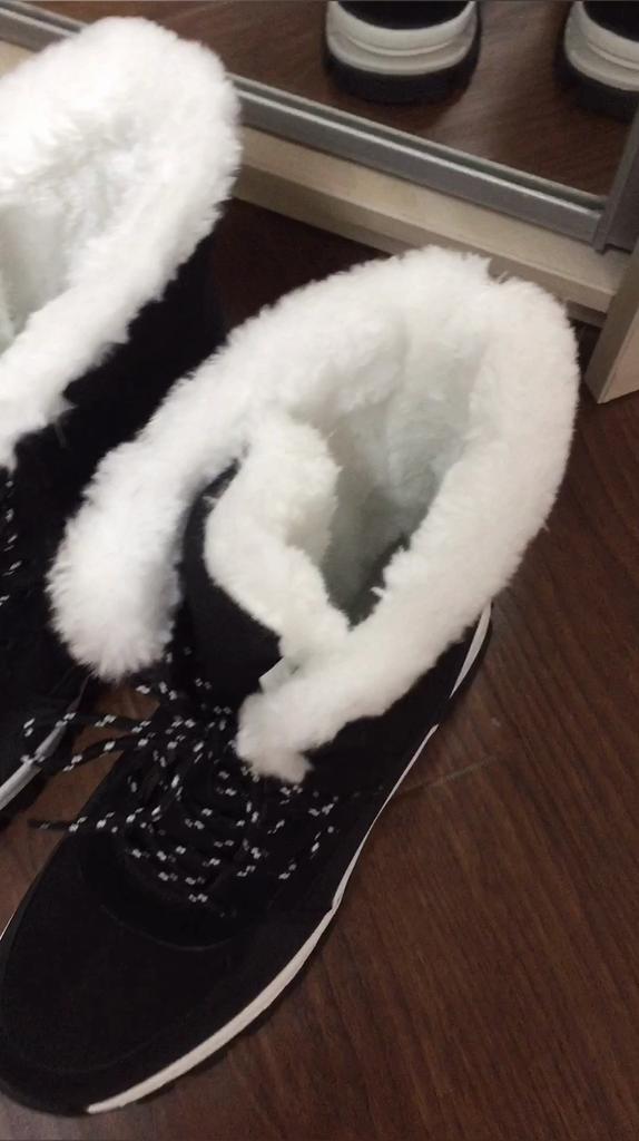 New boots so far, my favorites, I had similar ones but I like these even more, they are super thick on the inside, all made of very warm fur, plus it doesn't have any logo or anything so I love that it is like that, the color is easy to combine, and the black and white laces give it a very nice touch, I assure you that your foot will not be cold, in addition to having a very comfortable sole with each step. The quality is also very good and the measurements correspond to those specified by the seller.