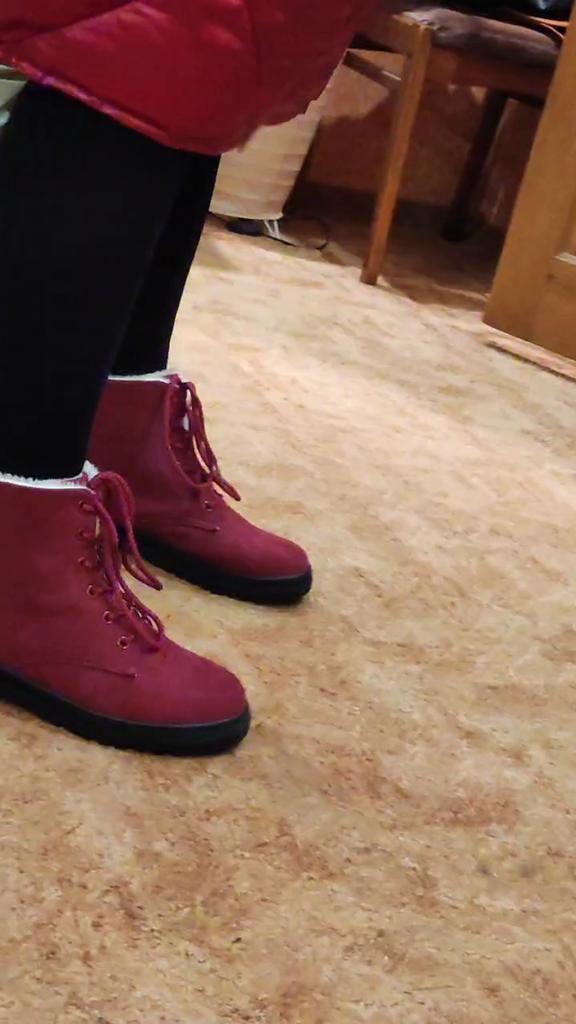 I liked the boots. They went, however, a little too long, a month and a half. 😌🤦♀️ It will not go in severe frost. They are rather demi-season. Somewhere for a cold, dry autumn. The sole is thin. The top is artificial suede, inside is artificial fur. Stitched and glued well. The only downside is that there is no side zipper. To put on or take off shoes, you need to constantly untie the shoelaces...🥲 And they are very cute. I'm happy. According to the size grid specified by the seller, they fit perfectly. Time will tell how they will wear. I recommend! 👍 Thanks to JUMA and the seller!