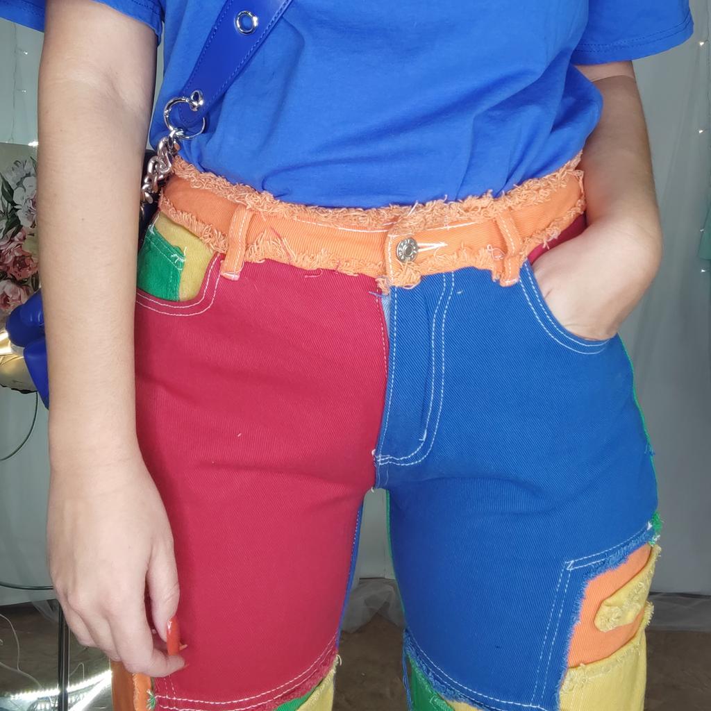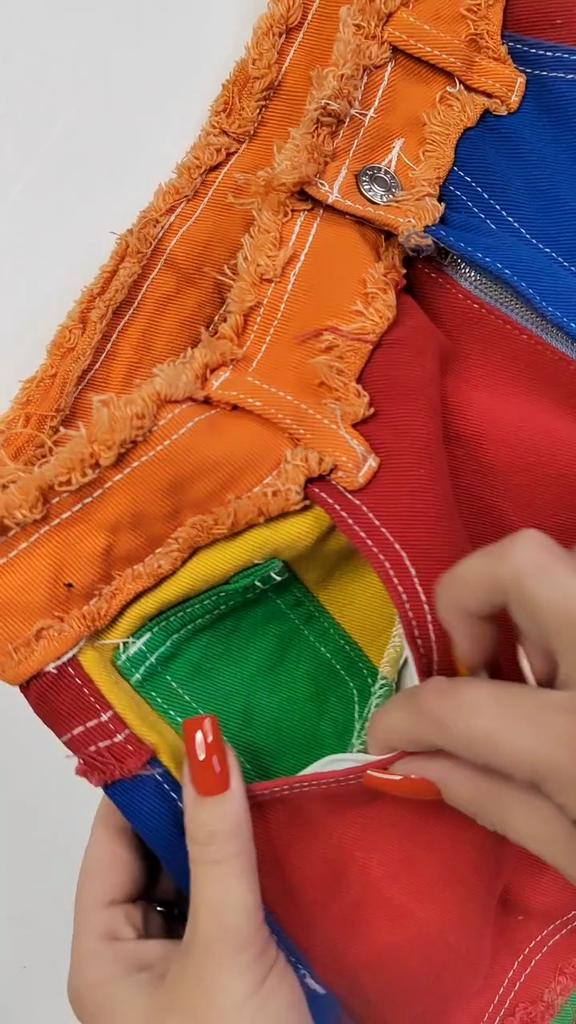 Personality American Dazzling Street Panels Ins Raw Edges Versatile High-waisted Loose Straight-leg Denim Trousers Women — buy online with free worldwide shipping!