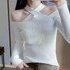 Solid Color Long Sleeve Pullovers Knitted Tops Sexy Off Shoulder Sweater Women Spring Autumn Halter Neck Slim Fit Clothes 28972 — buy online with free worldwide shipping!