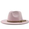 New Men Women Flat Brim Panama Style Wool Felt Jazz Fedora Hat Cap Gentleman Europe Formal Hat White Floppy Trilby Party Hat