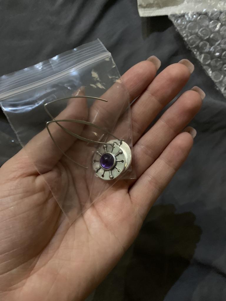 Simplicity Trendy Women Earrings Round Inlaid Purple Zircon Long Silver Color Metal Hollow Dangle Earrings Jewelry — buy online with free worldwide shipping!