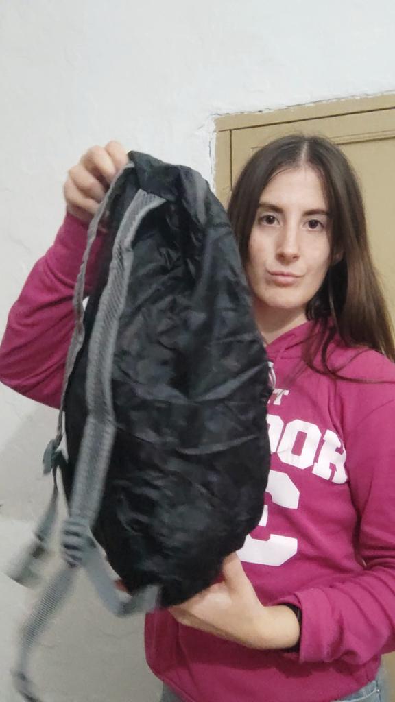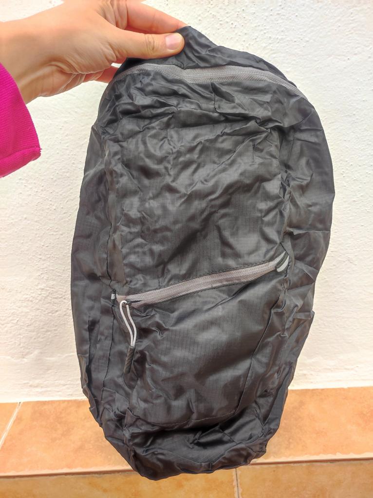 *Backpack 🖤 . The arrival time in Spain was 20 days well wrapped . 🖤 The backpack folds up and doesn't take up any space, once opened it fits a lot of things, I put three items of clothing, a cap, my toiletry bag.. 🖤 It has two handles that can be made shorter or longer 🖤 It has two pockets, one large and one smaller with a zipper It is a very good option 😍 🖤 HAPPY SHOPPING 🖤