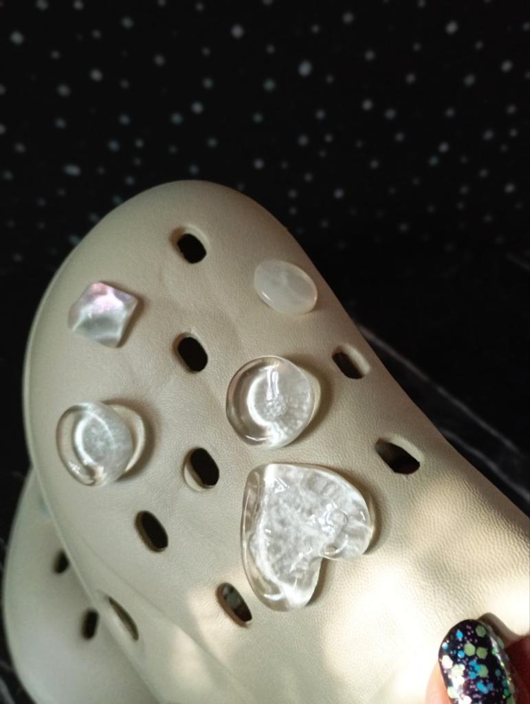 Beautiful and inexpensive jibbitz. Attach easily, hold on tight. I think they really decorated my new Crocs, which, by the way, are also from Joom.