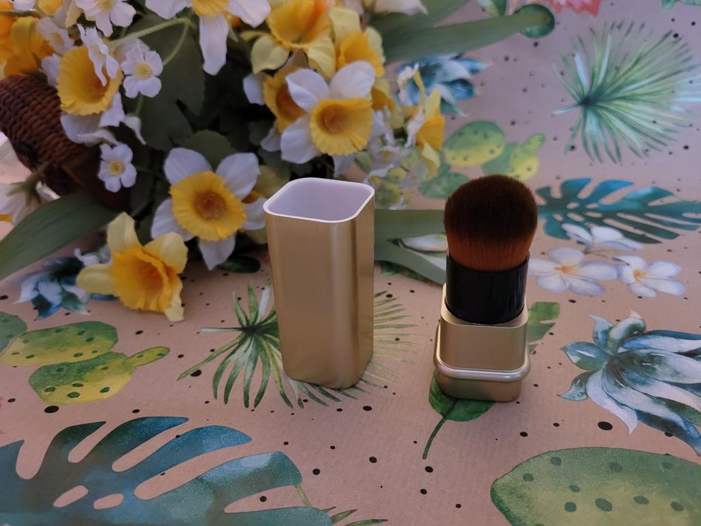 Stylish blush brush 🖌️ Every girl should have many different makeup brushes in her arsenal. I chose this model. 。Stylish, minimalist design of the blush brush body. 。The makeup brush has a densely packed wool surface. Hairs do not fly out of the brush. 。No unpleasant odor. 💔The brush opens easily, but I find it difficult to close it. This requires additional skill. ♥️This blush brush is convenient to take with you on a trip. It is compact and closes with a cap, thereby not dirtying surrounding things. 👌I recommend this blush brush to girls who like to touch up their makeup while traveling.