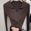 Autumn/winter Knitted T-shirt Women's Pullover Knit Sweater V-neck Polo Shirt Top Knitted Undershirt Women's Stretch Skinny Sweater Undershirt