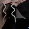 European and American Cold Wind Snake Shaped Full Diamond Earrings Exaggerate Fashionable Personality Cool Temperament Long and Niche Slim Earrings