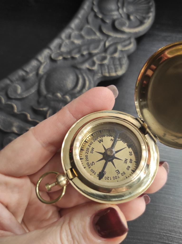 Elegant Brass Push Button Pocket Compass - A Timeless Navigation Tool