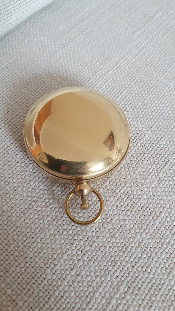 This compass is entirely composed of brass. It looks stunning with a gleaming finish. This lovely brass compass is in fine functioning order. The compass has a diameter of 5.08 cm.