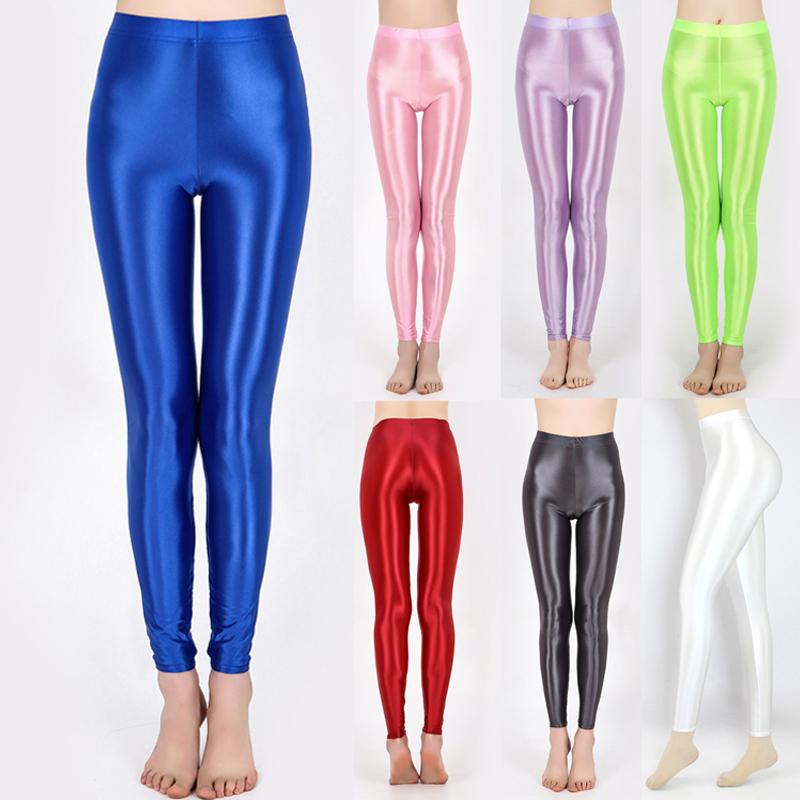 Women Sexy Satin Glossy High Waist Yoga Leggings Nine-point Shiny Oily Gloss Pants — buy online with free worldwide shipping!