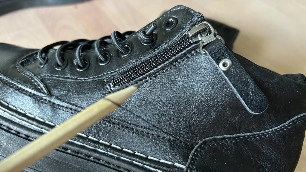 On the left shoe (see photos) the thread from the seam is lying unsewn outside! It is not sewn, which is visually and qualitatively very bad! Poor workmanship!! I ask for clarification of this matter!