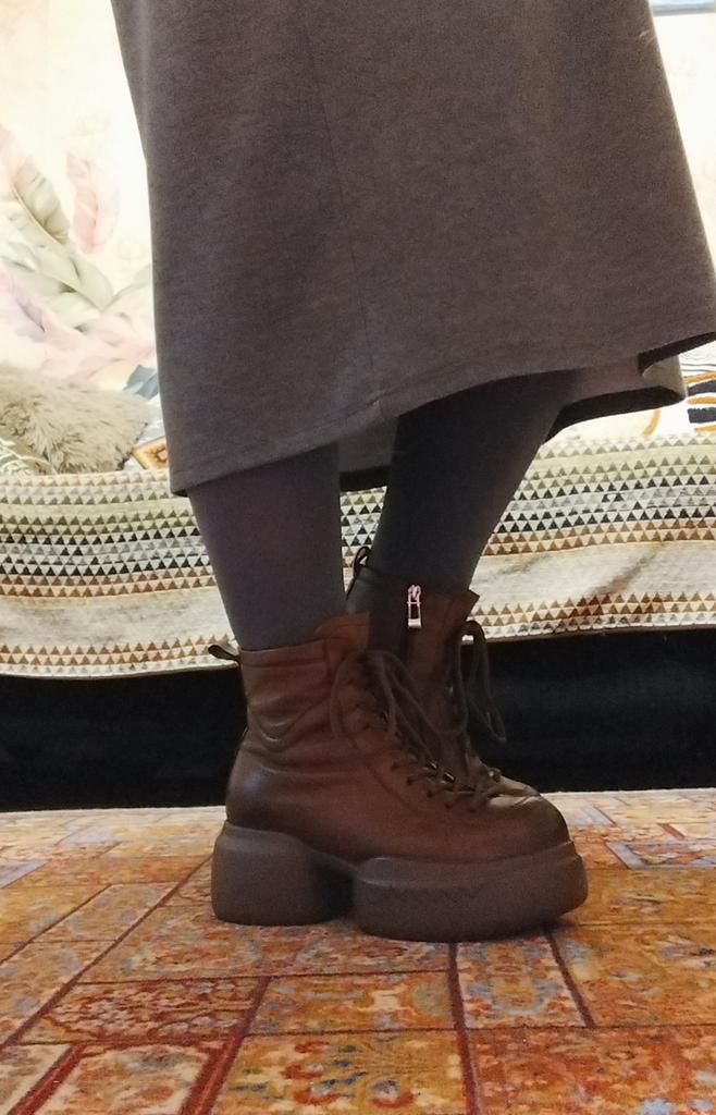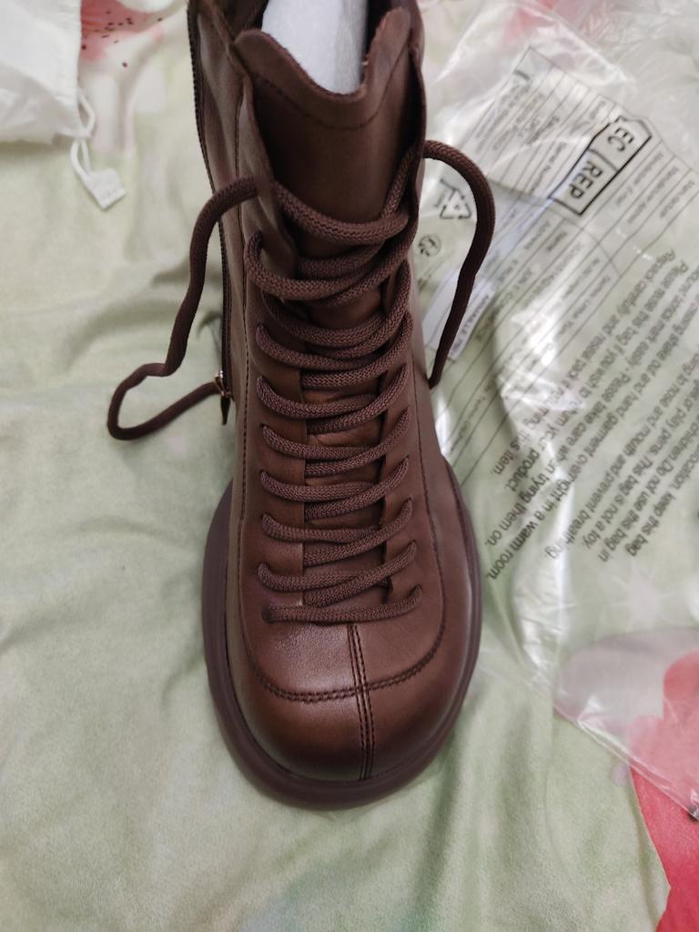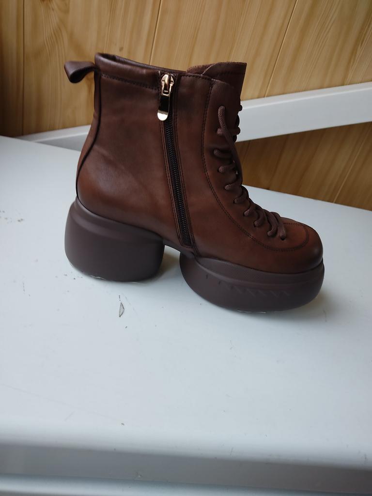 Johnature Genuine Leather Short Boots Thick Soled Platform Shoes Vintage Round Toe Boots — buy online with free worldwide shipping!