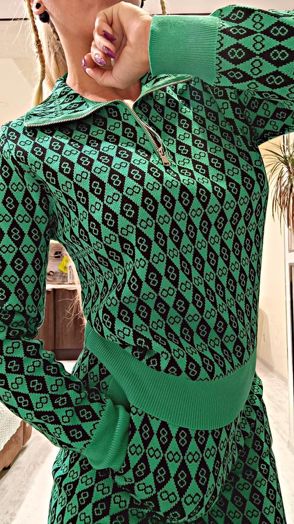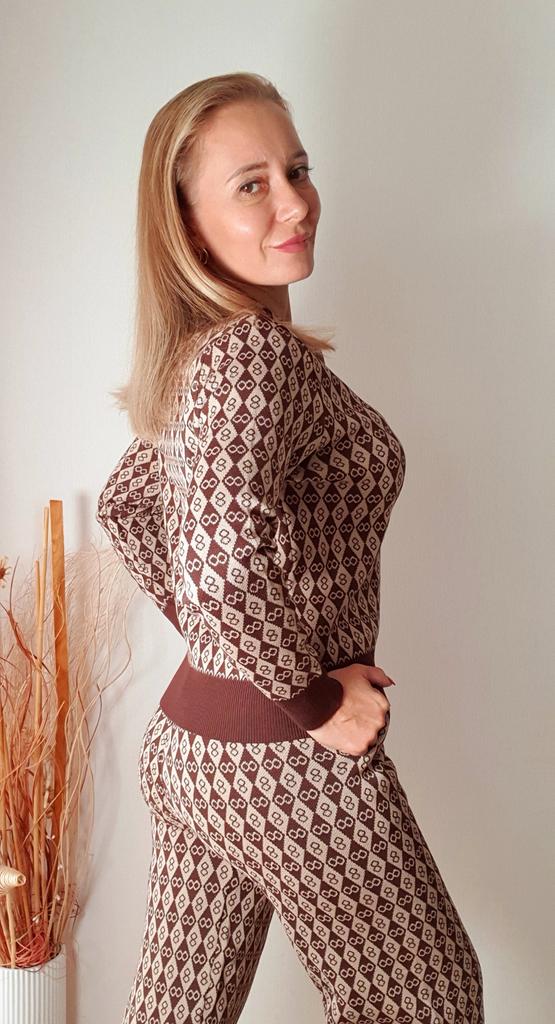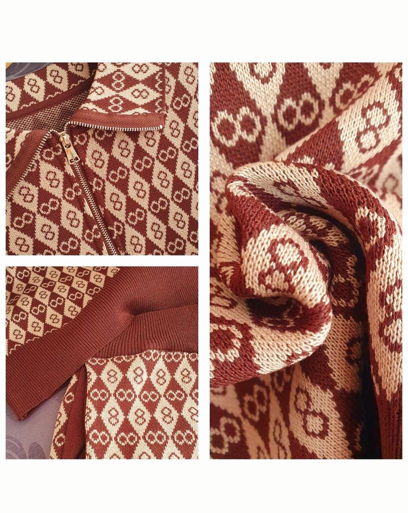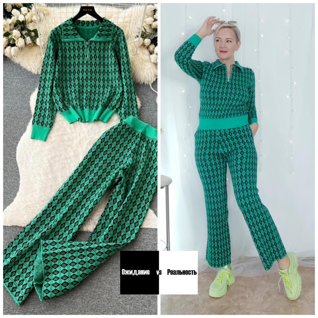 European Style Retro Casual Printed Turtleneck Sweater for Women with High Waisted Elastic Long Pants Fashion Two-pieces Suit — buy online with free worldwide shipping!