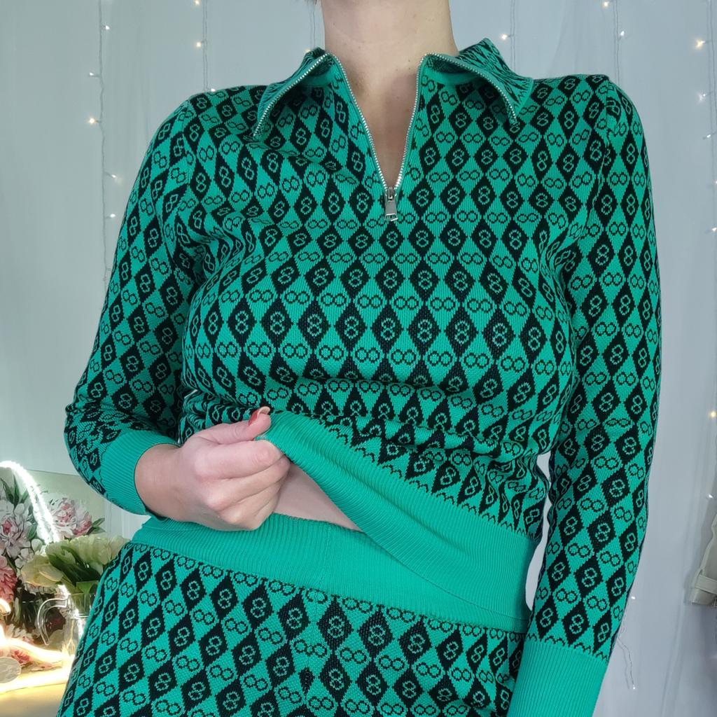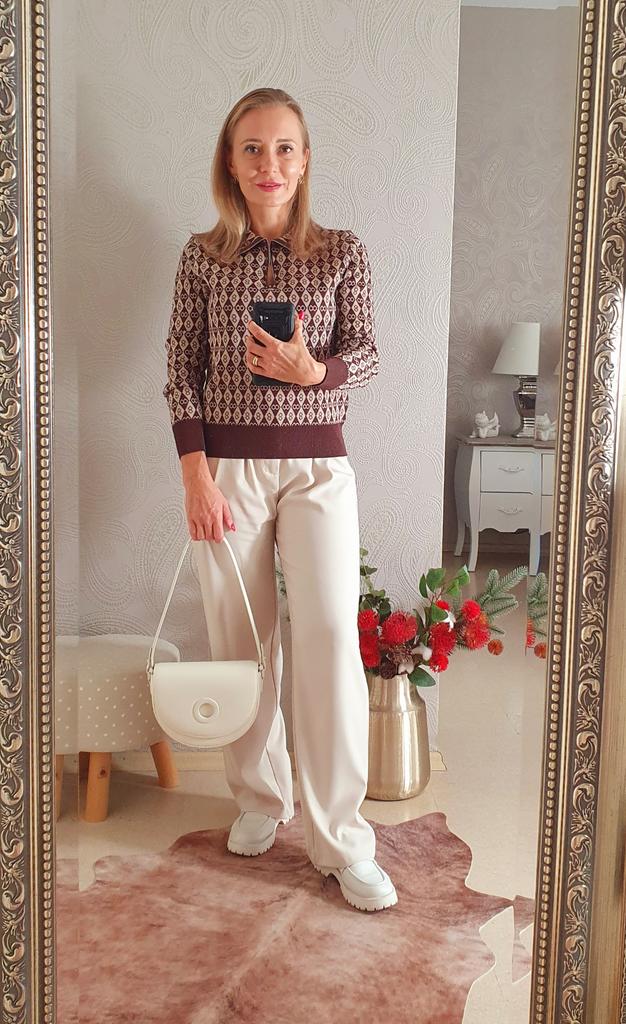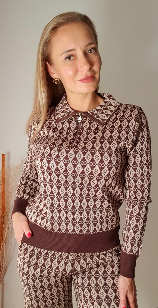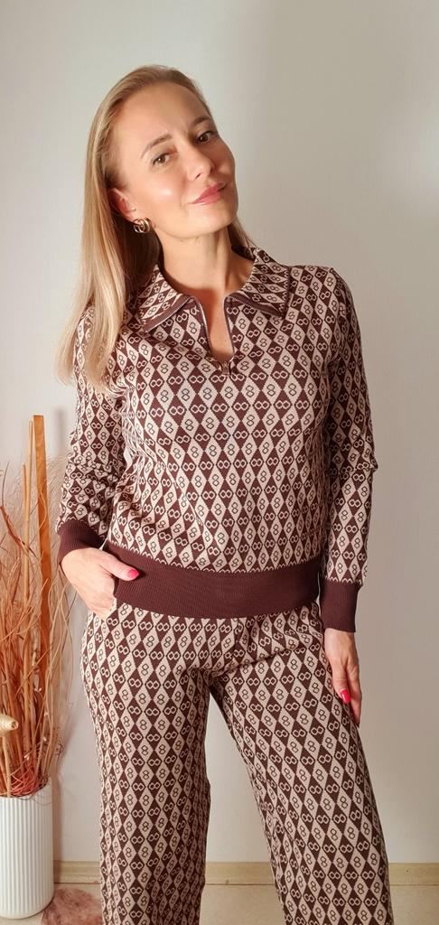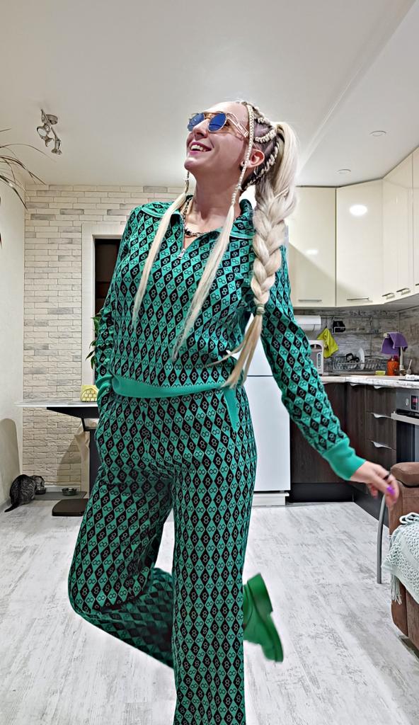 European Style Retro Casual Printed Turtleneck Sweater for Women with High Waisted Elastic Long Pants Fashion Two-pieces Suit — buy online with free worldwide shipping!