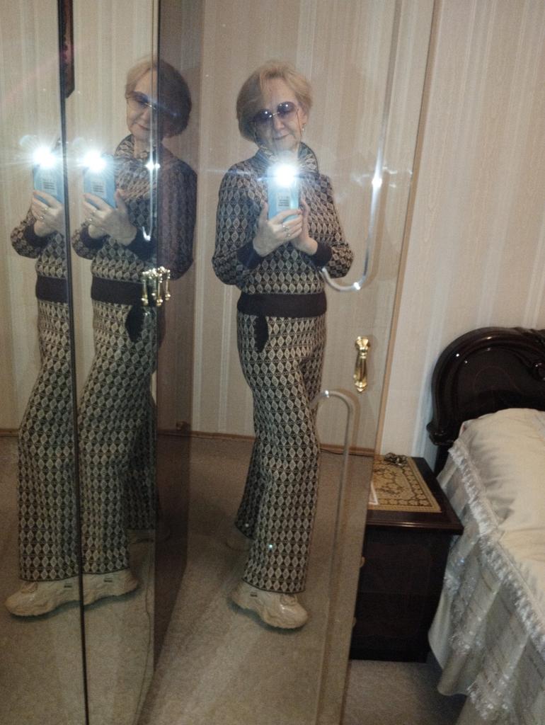 A cute suit. Glad that I am short b/c the pants covers most of my thighs. Thanks!👍
