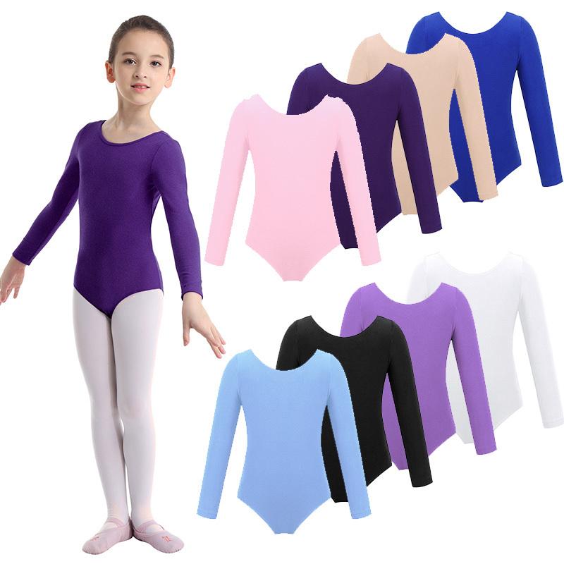 Kids Girls Classic Long Sleeves Gymnastics Leotard Round Neck Ballet Dance Bodysuit Dancewear Activewear — buy online with free worldwide shipping!