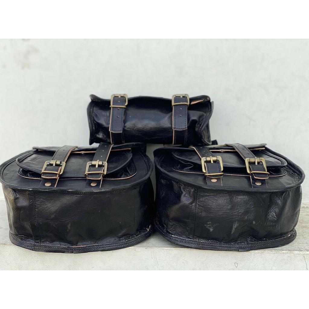 New Leather Black Motorcycle Combo Saddle 3 Bags Saddlebag Luggage 3 Side Bag