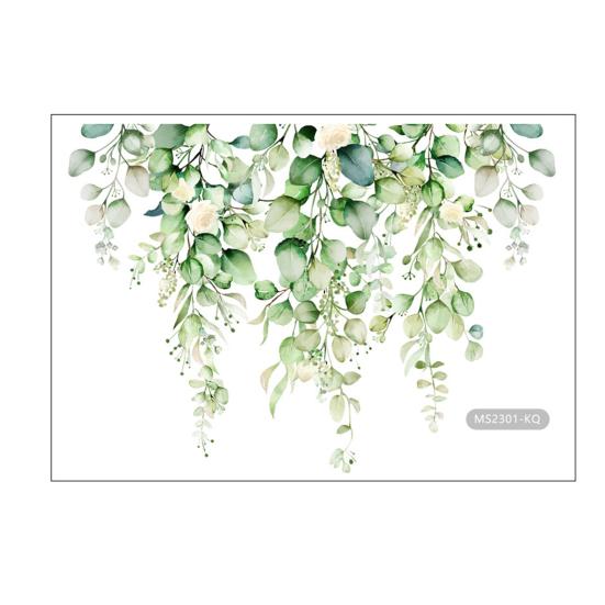 Colors Green Plant Flowers Pattern Self-Adhesive Wall Sticker for Home Bathroom