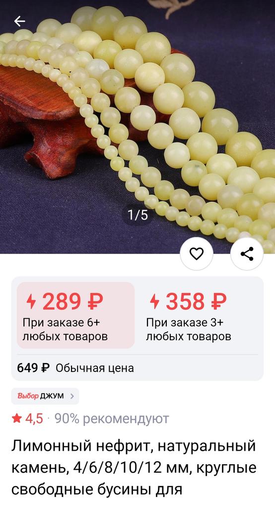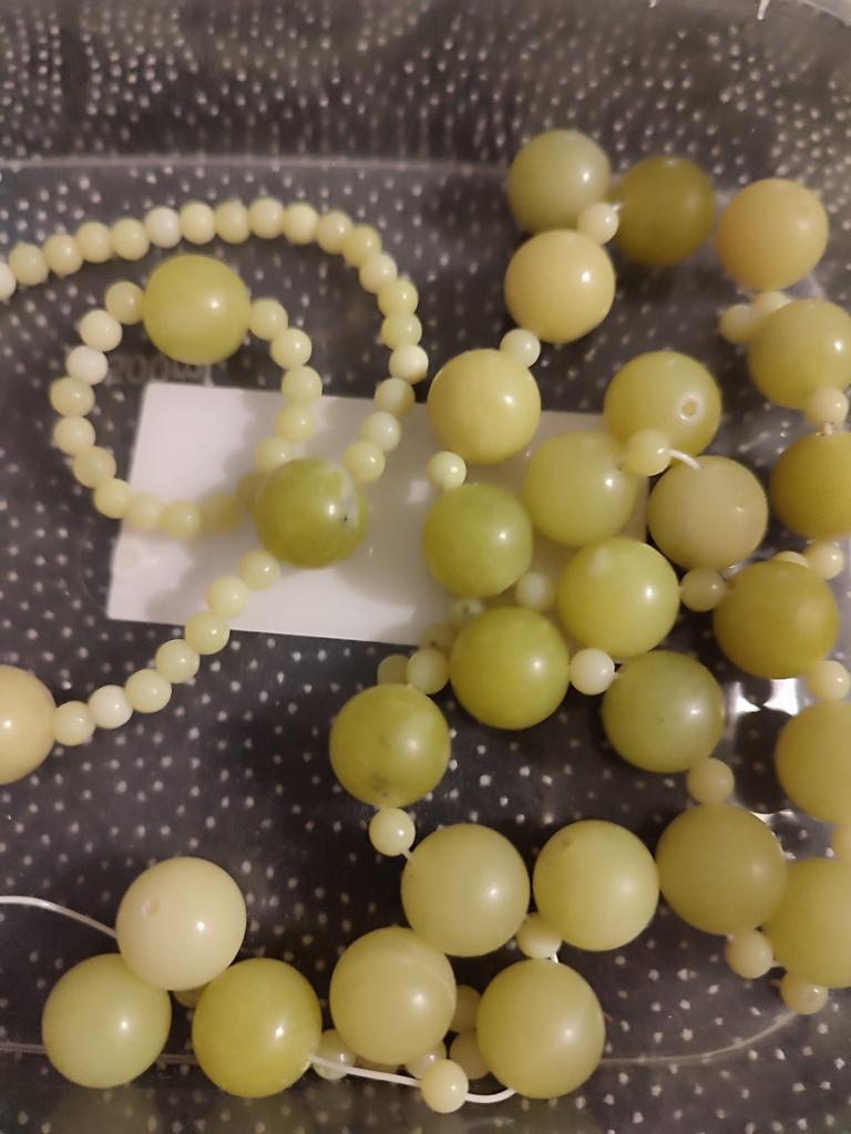 I expected the color to be more yellow, like in the promotional photo, but in reality they are more green. I got beads with black spots - I made a bracelet, a ring, and a short 2-strand necklace with 1.2-D;0.4-D