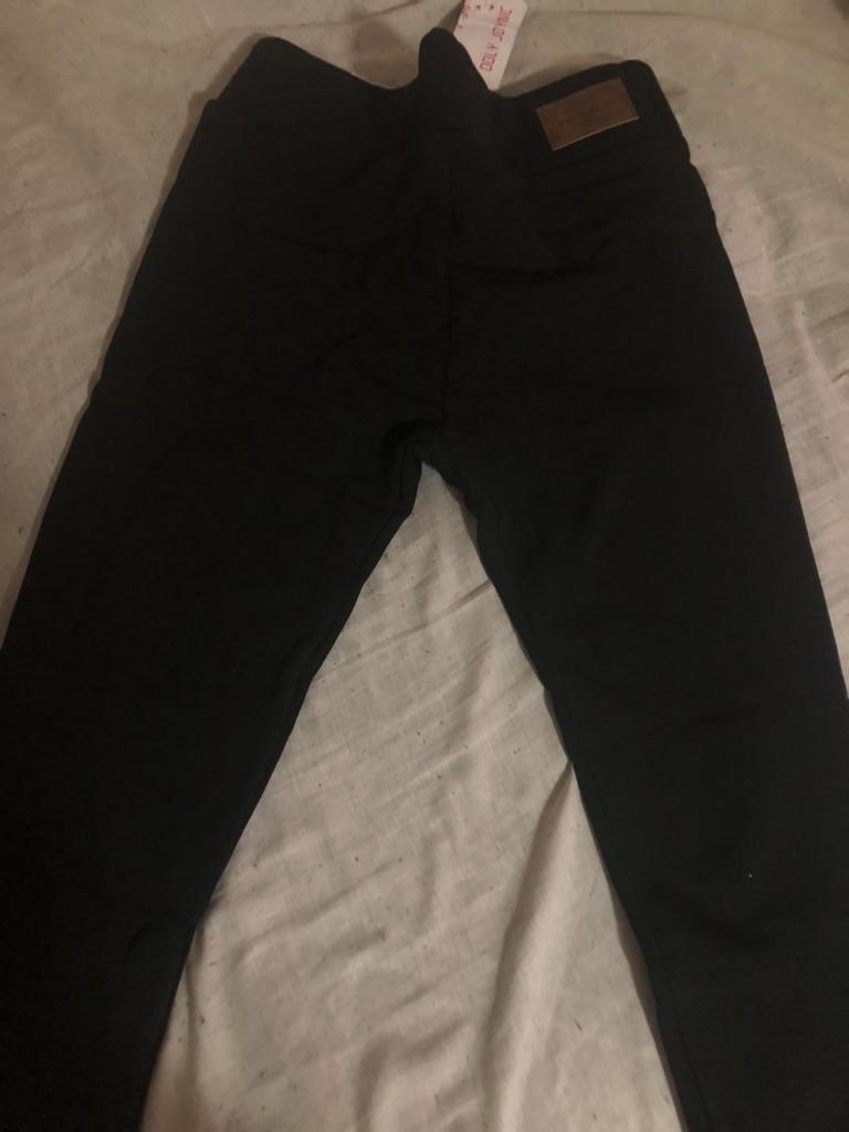 Most likely these are fur-lined leggings, they don't go with jeans at all, they're a bit too small.