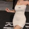 Pleated Sleeveless Mini Dress Solid Colour Sleeves Package Hip Pleated Women Dress