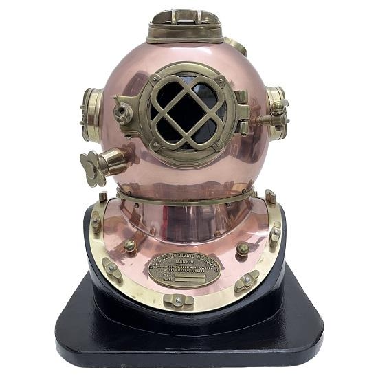 Embrace the allure of the deep sea and channel the spirit of adventure with our Scuba Diving Helmet, a masterpiece that encapsulates the rich history of underwater exploration. Make it yours today and embark on a journey through time and the boundless wonders of the ocean's depths. Dive into history with this captivating Copper Antique Replica Marine Helmet, inspired by the US Navy Mark V Diver's Helmet.