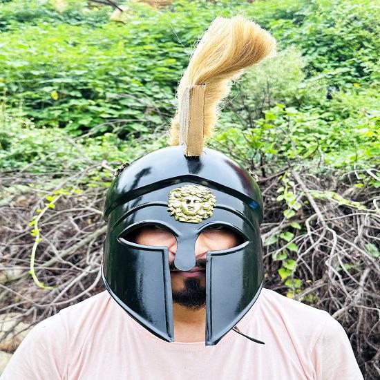 Crusader with a Roman Corinthian helmet Full Face Corinthian Warrior Mediaeval Knight Armour Helmet Cosplay Helmet Ideal Christmas Present for Him