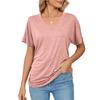 HNXC Women's Fashion Casual Summer Solid Color Print Short Sleeve V-Neck Blouses & Shirts