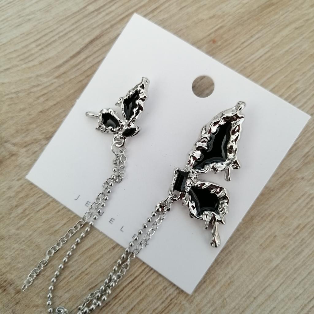 RUI RUI YU Asymmetrical Black Butterfly Wing Earrings Women's New Fashion Earrings Popular Design Tassel Jewelry