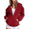 Solid Color Long Sleeve Pocket Hooded Zipper Thickened Pullover Sweatshirt for Women
